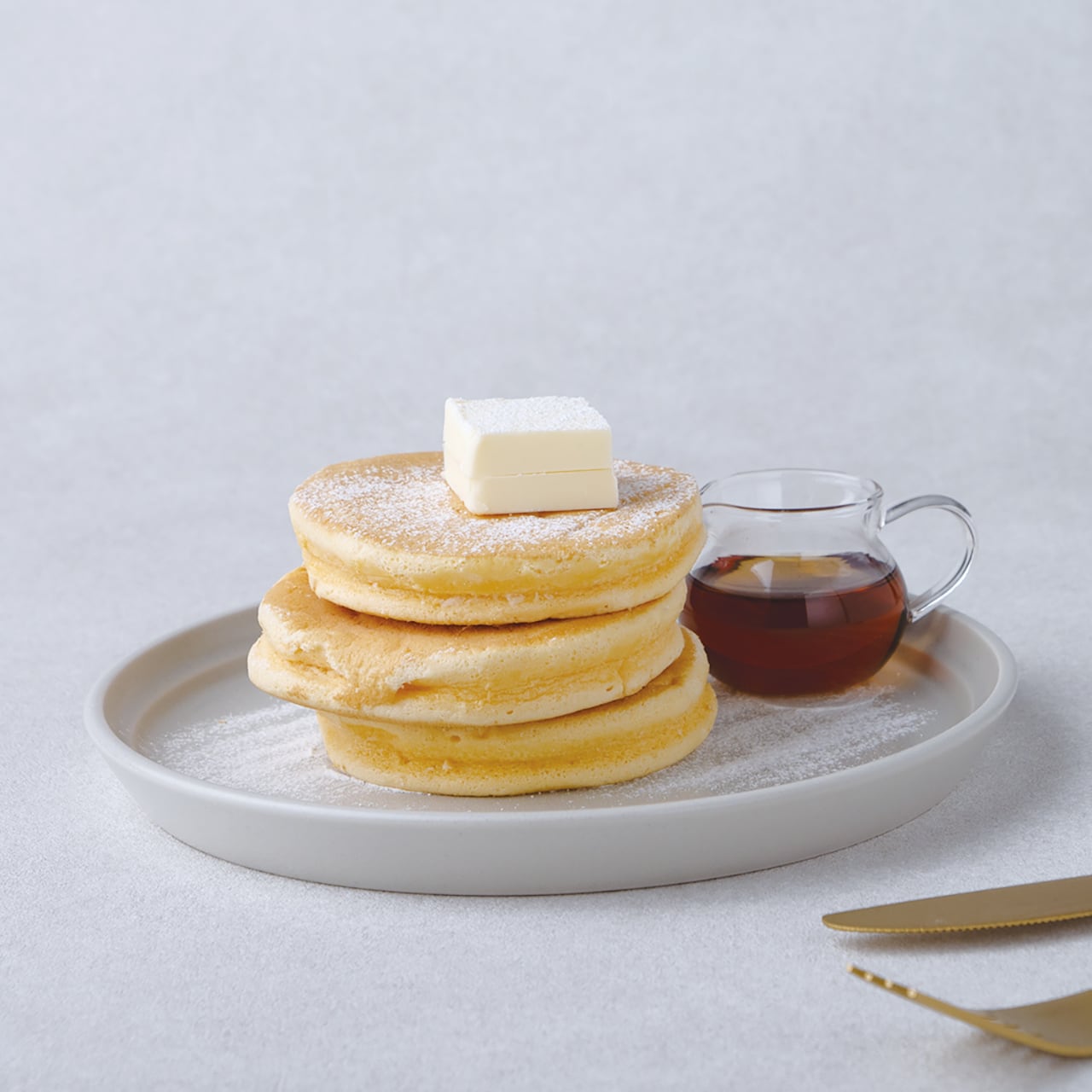 冷凍なのに食感・風味共に本格派なしっとりふわふわのパンケーキ生地をご用意しました。